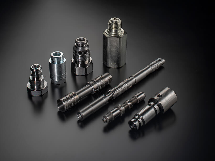 スプールやスリーブなどの丸物部品の加工技術が認められ、多くの油圧機器メーカー様、機械メーカー様に採用いただいています。また、ワンストップ製造体制を強みとし、加工だけでなく、熱処理、表面処理、後工程などを含めた完品での提供が可能です。またお客様のニーズに応じた数量の対応が可能です。部品生産における最適な製造方法をご提案します。